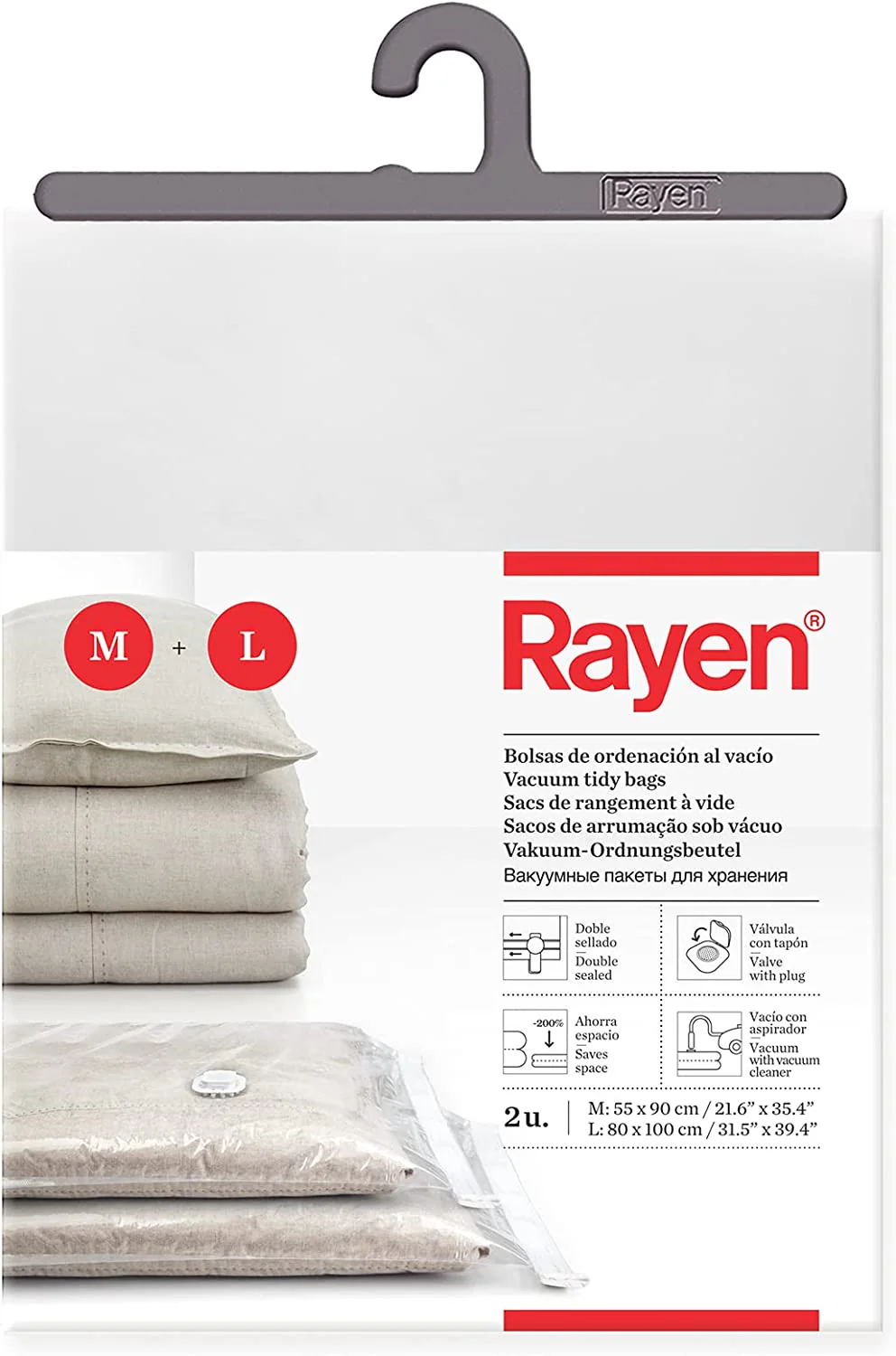 Pack de 2 bolsas de almacenaje al vacío de rayen para ropa, mantas.