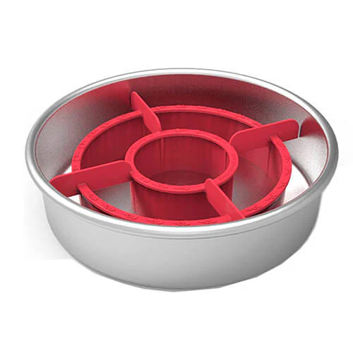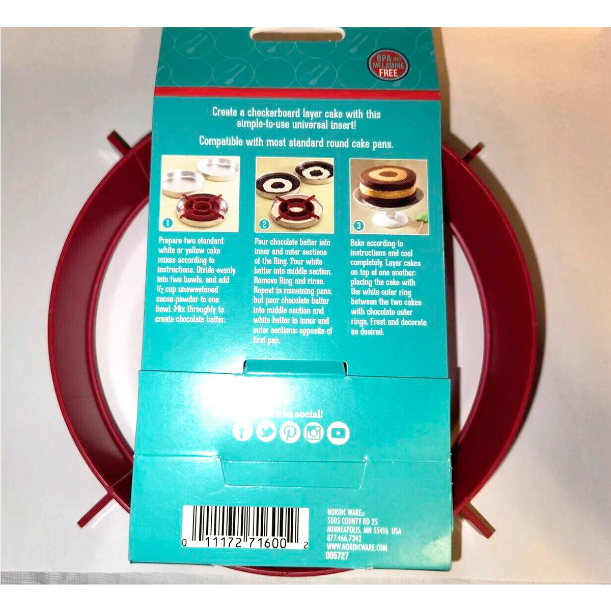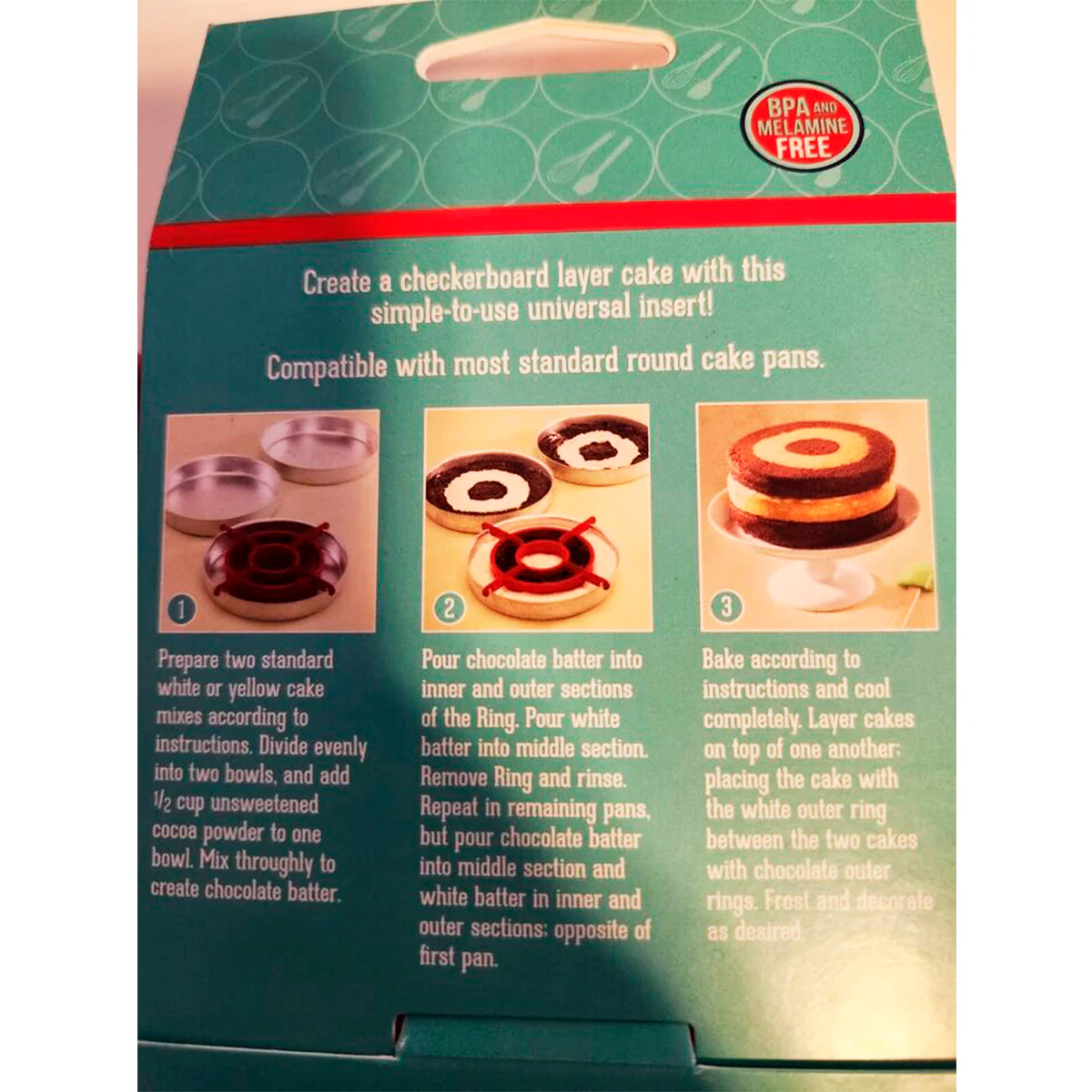 ¡Haz divertidos y festivos pasteles de tablero de ajedrez! ¡Simplemente vierta la masa de diferentes colores en los compartimentos de este simple inserto, retire el inserto y hornee! Funciona en cualquier molde para pastel redondo de 8 o 9 pulgadas. Fabricado con orgullo en los Estados Unidos.