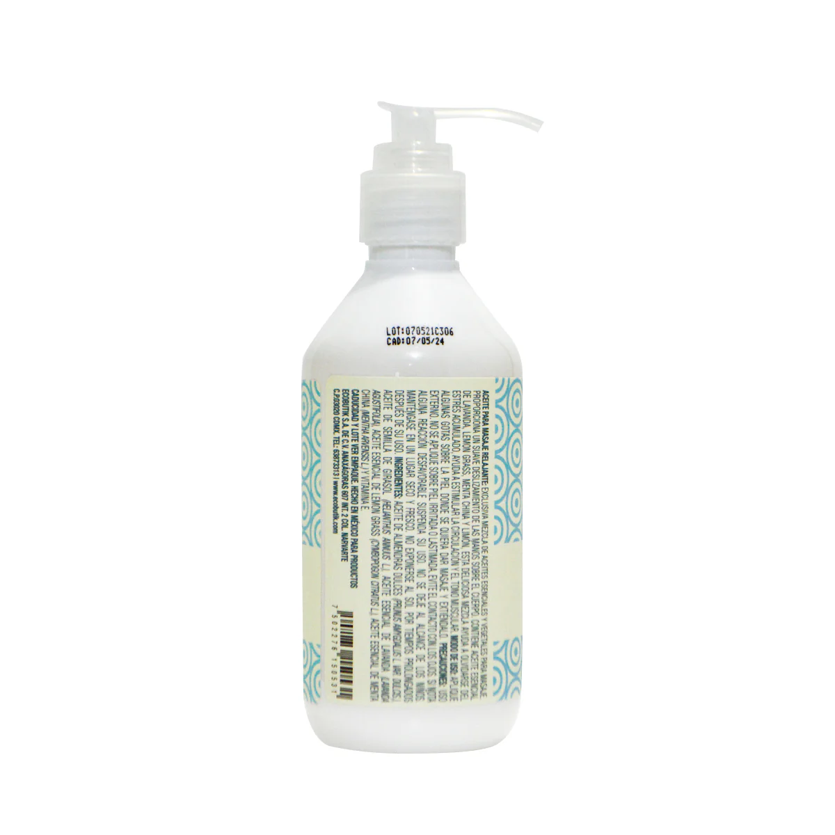 Formas de uso: Aplique algunas gotas sobre la piel donde se quiera dar masaje y extiéndalo.