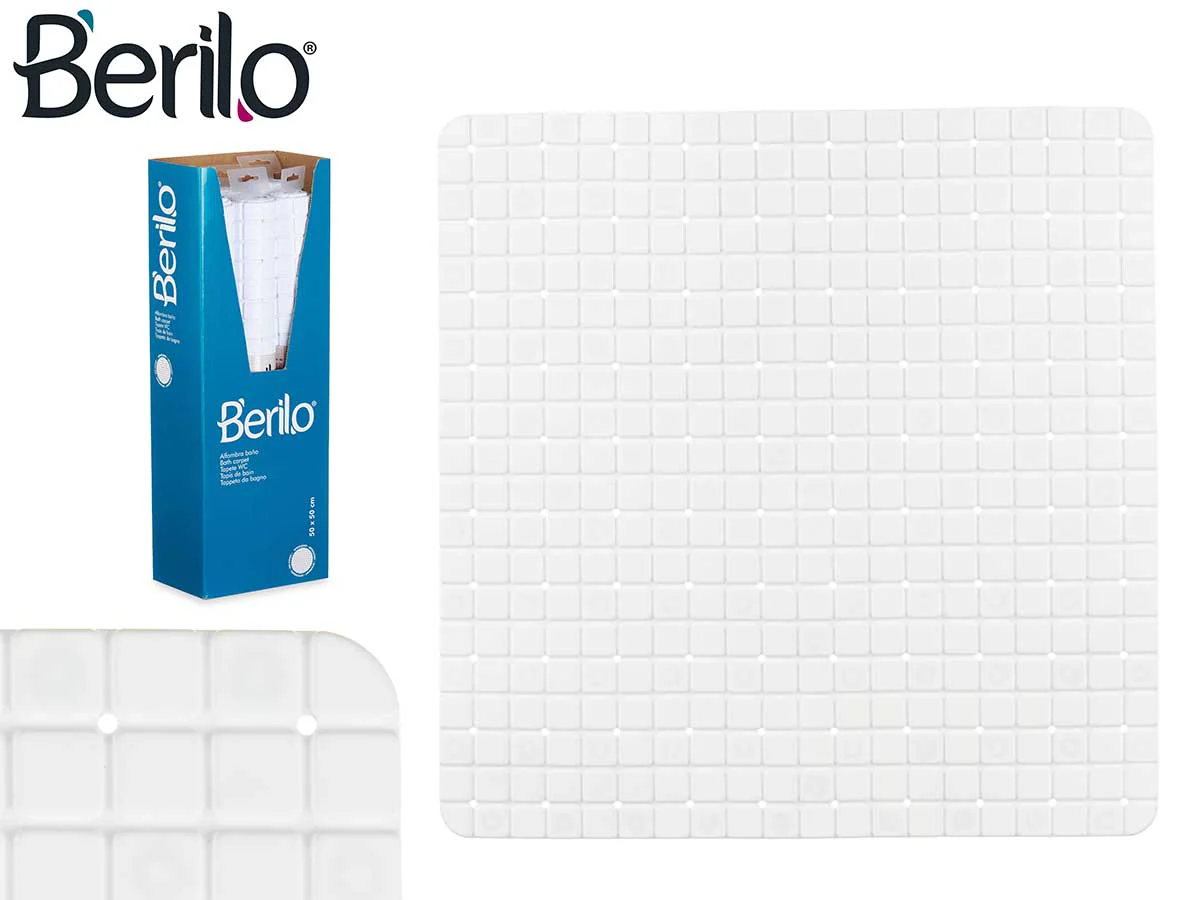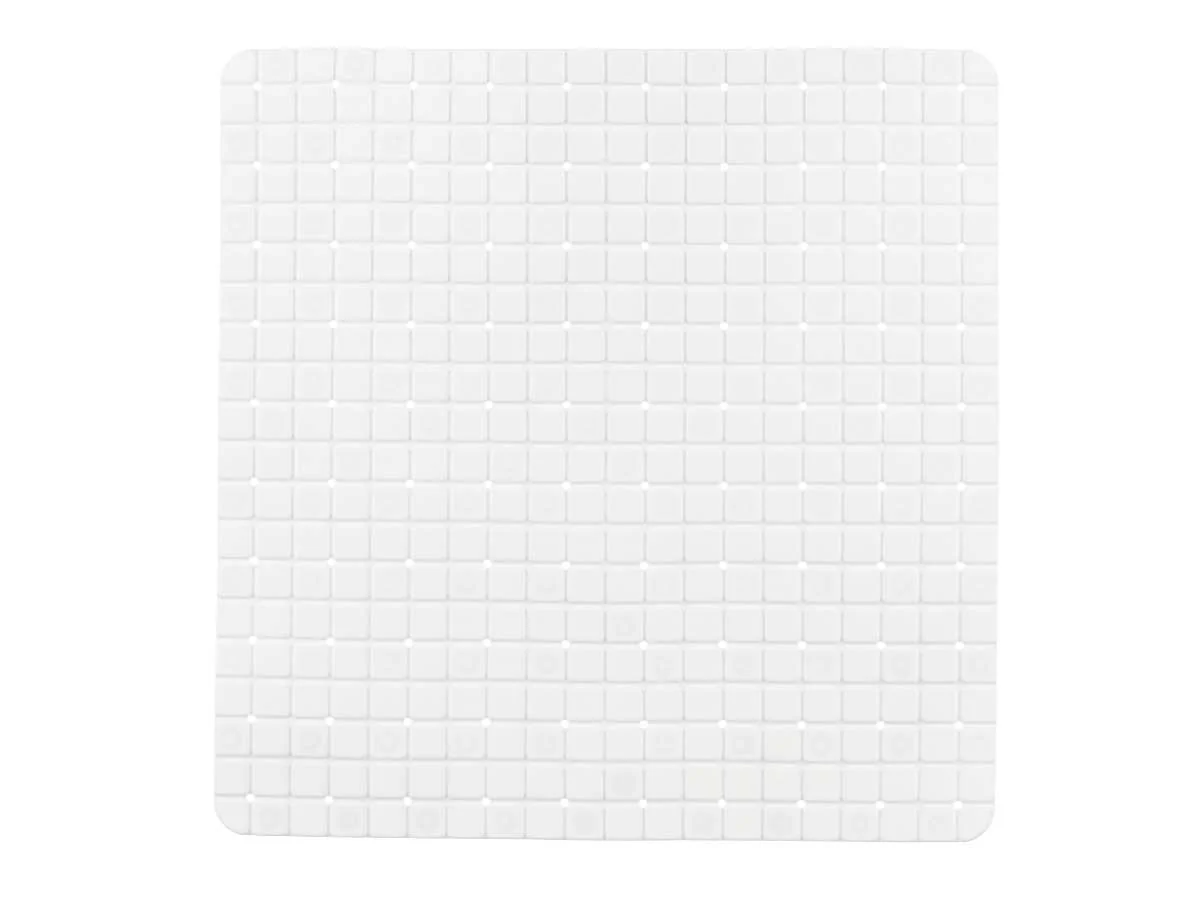 ¡Evita el peligro de resbalones con esta alfombra antideslizante blanca! Está hecha con plástico (PVC) transparente, y su tamaño de 50,3 x 50,3 x 0,7 cm, es ideal para espacios pequeños. Su diseño de cuadros transparentes hará que tu baño se vea limpio y moderno.
