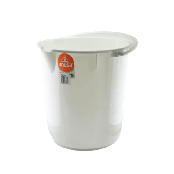 El balde tiene marcación interna para medir la cantidad de agua que se tiene y pico para controlar la salida del agua al momento de verter. Útil para acompañar los procesos de lavado de pisos y cocinas.