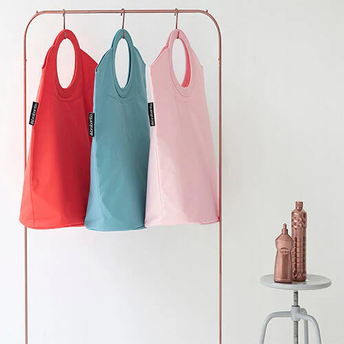 • Las manijas grandes con solapa en un cierre magnético no dejarán que la ropa se caiga de la bolsa.