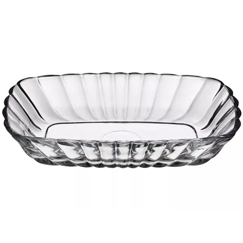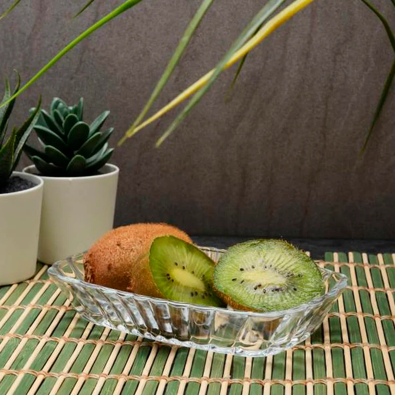 El plato Pasabahce Mezze Kayik está hecho de material de vidrio de alta calidad y tiene un diseño rectangular.
