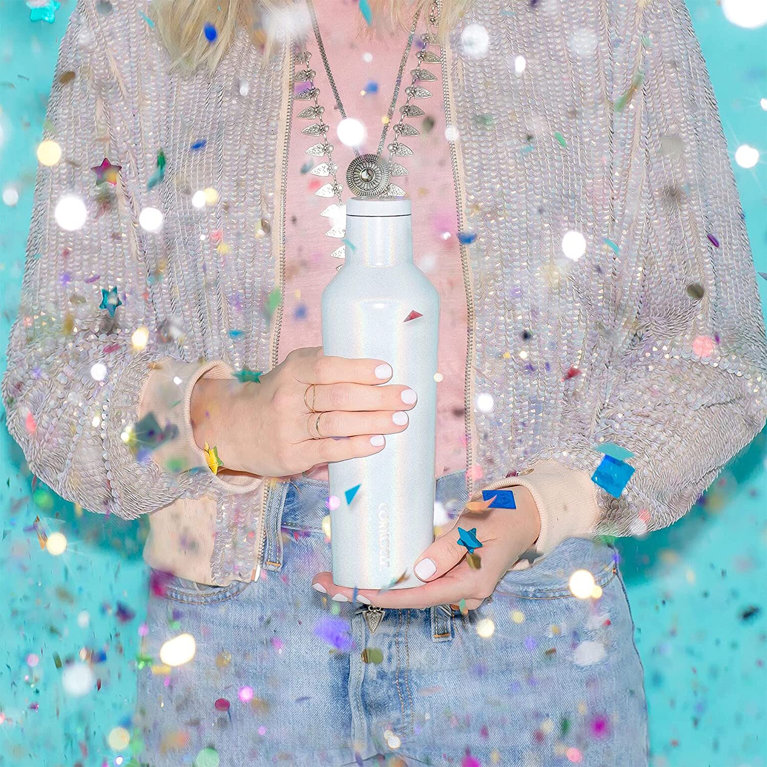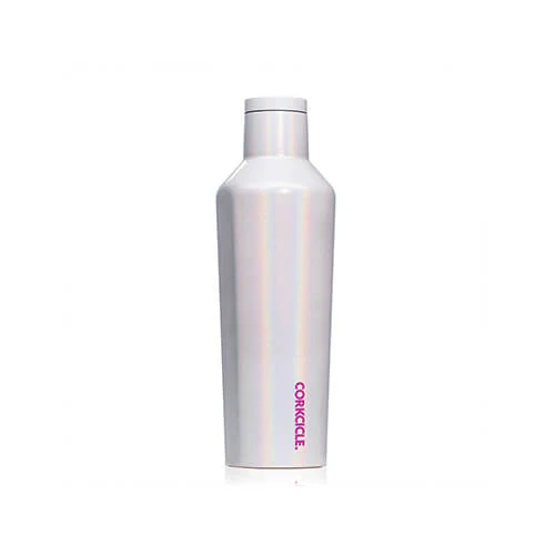 Corkcicle Canteen 16oz, color Unicorn Magic. Mantiene las bebidas calientes durante 12 horas y las bebidas frías durante 25 horas; es ideal para usar en ciudad, playa, oficina y en casa. Sus lados ergonómicos, planos y patentados, y su base antideslizante, lo hacen muy seguro.