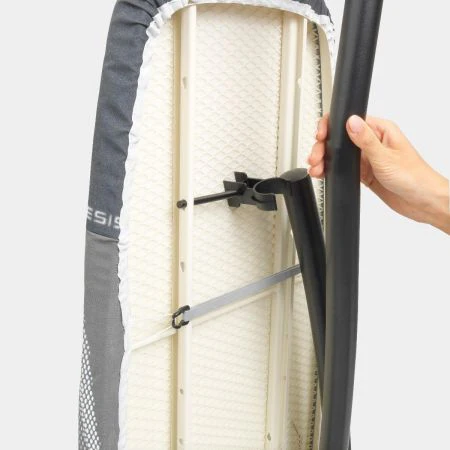 ¿Necesitas espacio? La mesa de planchar D de Brabantia es tan ancha que te permite planchar una camisa de una sola vez. Colócala sobre el extremo con forma de hombro de la mesa para plancharla a la perfección. No encontrarás ningún soporte para plancha en tu camino, puedes colocarla en el área de apoyo resistente al calor de la funda. Una mesa de planchar realmente fabulosa que puedes utilizar incluso sentado.
