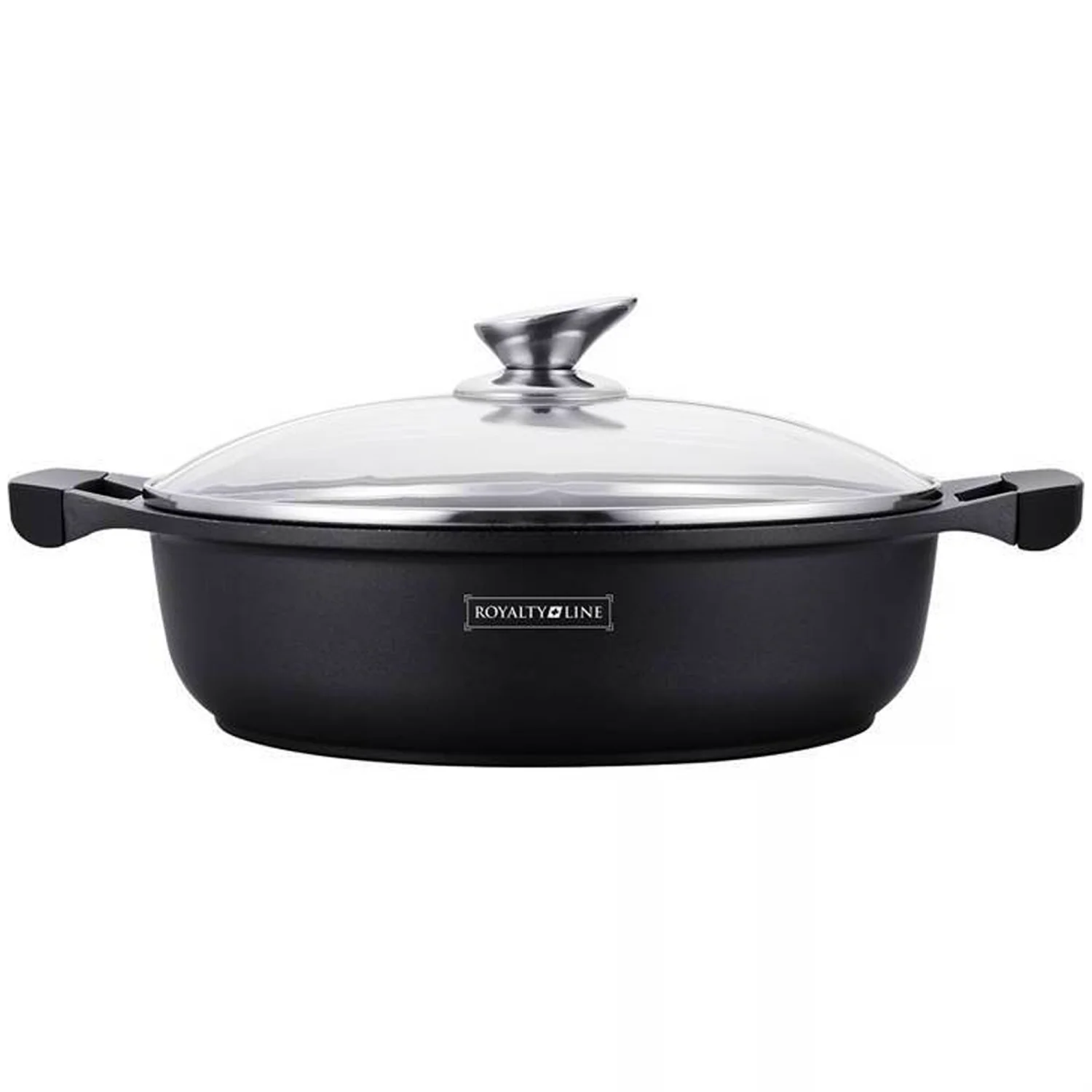 Disfruta de una cocina más eficiente con la cacerola baja antiadherente de 34 cm y 7 litros de Royalty Line. Fabricada en aluminio fundido con un revestimiento de alta calidad, garantiza una distribución uniforme del calor y evita que los alimentos se peguen. Su diseño bajo es ideal para saltear, sofreír y cocinar a fuego lento, permitiéndote preparar desde carnes hasta arroces con resultados perfectos. Apta para todo tipo de cocinas, incluida la inducción. ¡Un imprescindible en tu cocina para cocinar con comodidad y estilo!