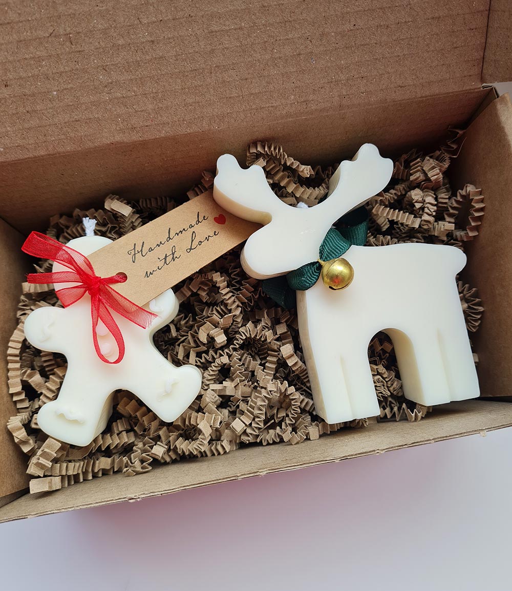 Cajitas regalo con reno y muñeco ginger o abeto aromas navideños
