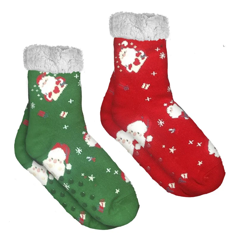 Calcetines Kids Antideslizantes Papá Noel Borreguito Sherpa Rojo/Verde
