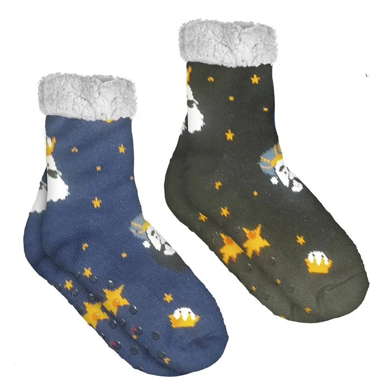 Calcetines Kids Antideslizantes Reyes Magos Borreguito Sherpa Negro/Azul