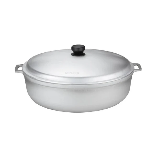Está hecho en aluminio natural fundido bajo altas temperaturas. Incluye tapa y pomo. En el caldero se puede cocinar arroces y frituras o dulces y mucho más.