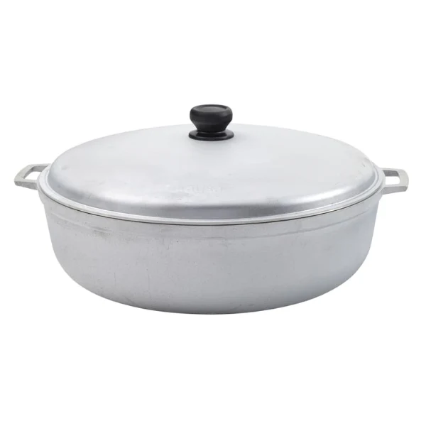 Está hecho en aluminio natural fundido bajo altas temperaturas. Incluye tapa y pomo. En el caldero se puede cocinar arroces y frituras o dulces y mucho más.