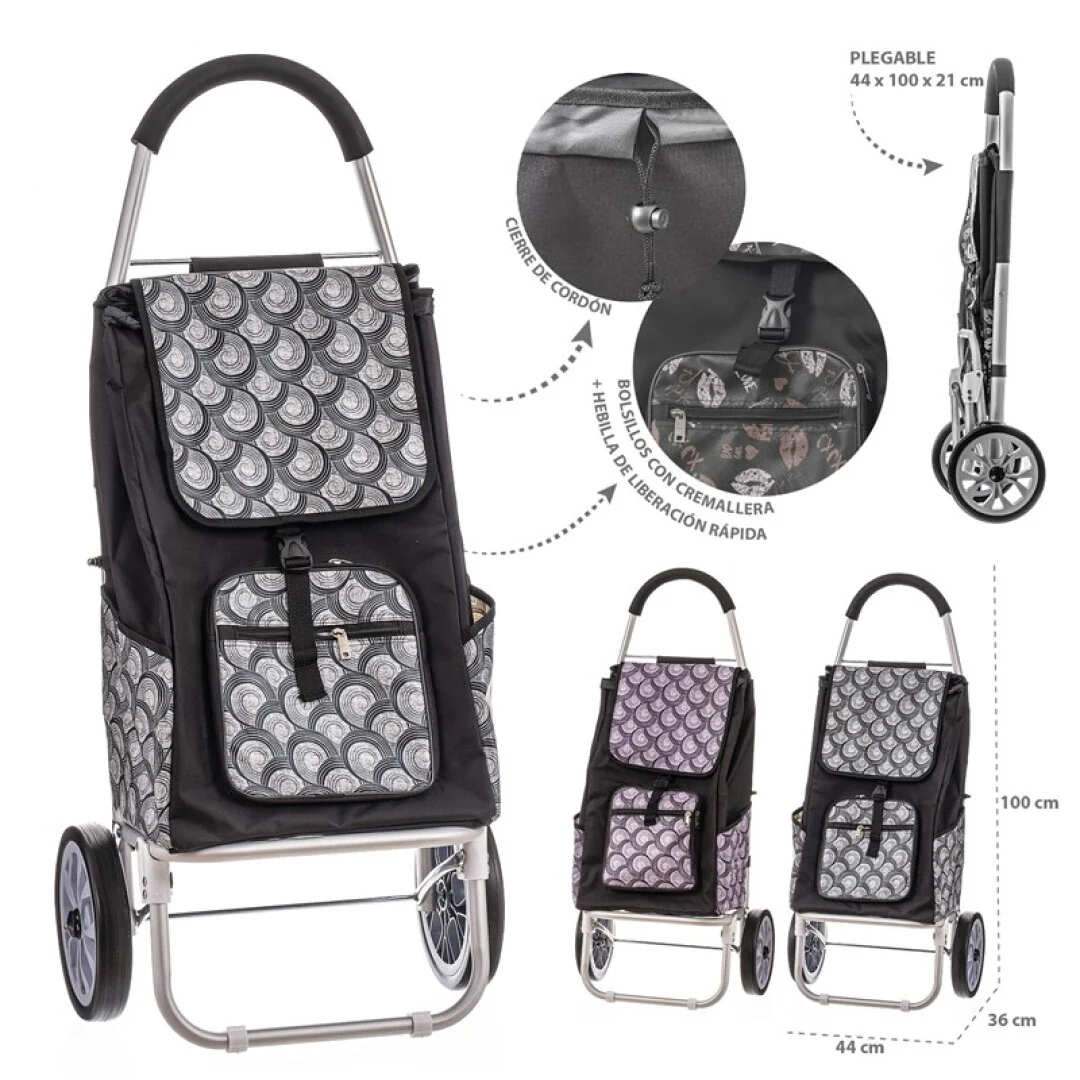 Perfecto para tus compras diarias, este carro de aluminio con estampado geométrico es práctico, ligero y muy resistente.