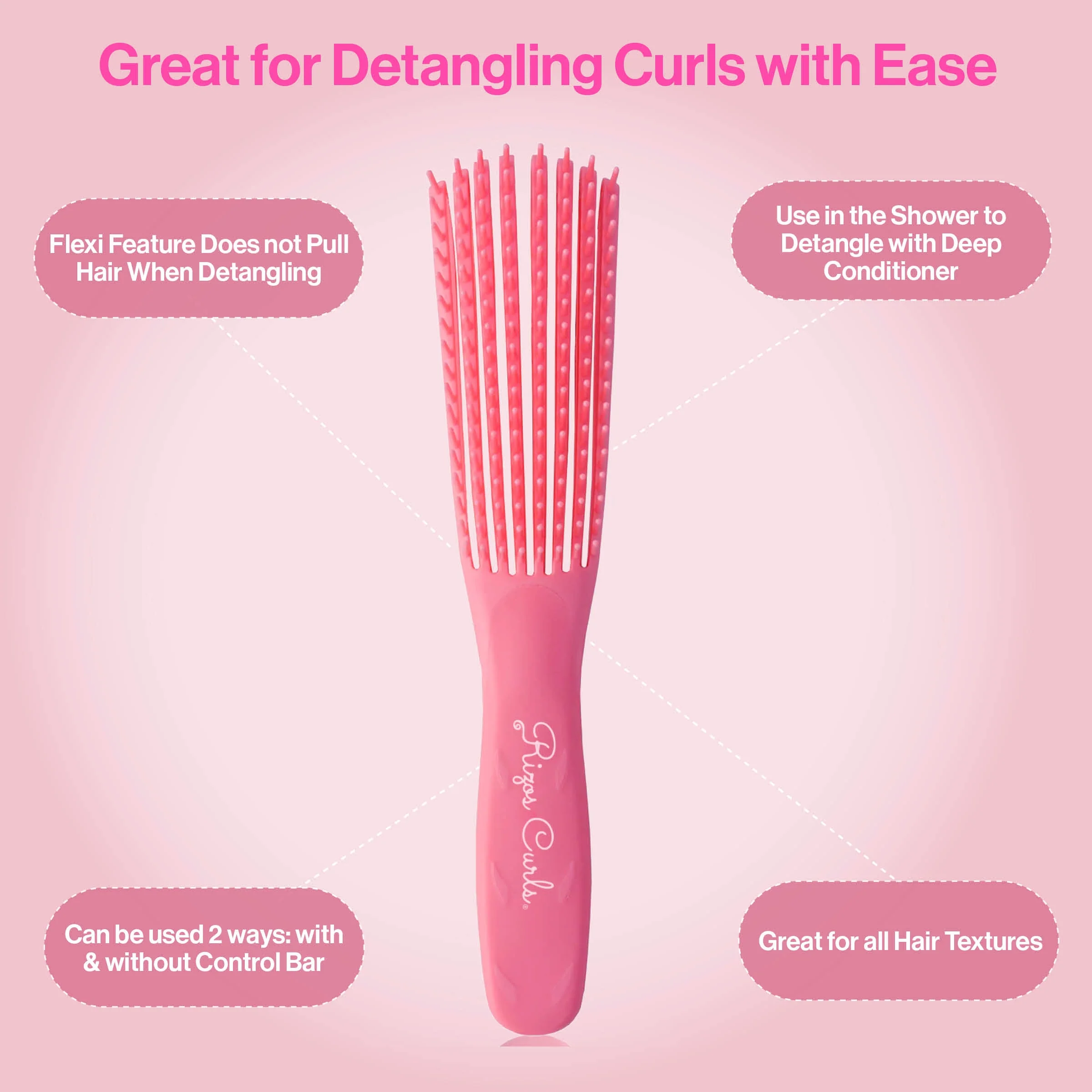 - Función flexible Se desliza con tus rizos mientras los desenredas.