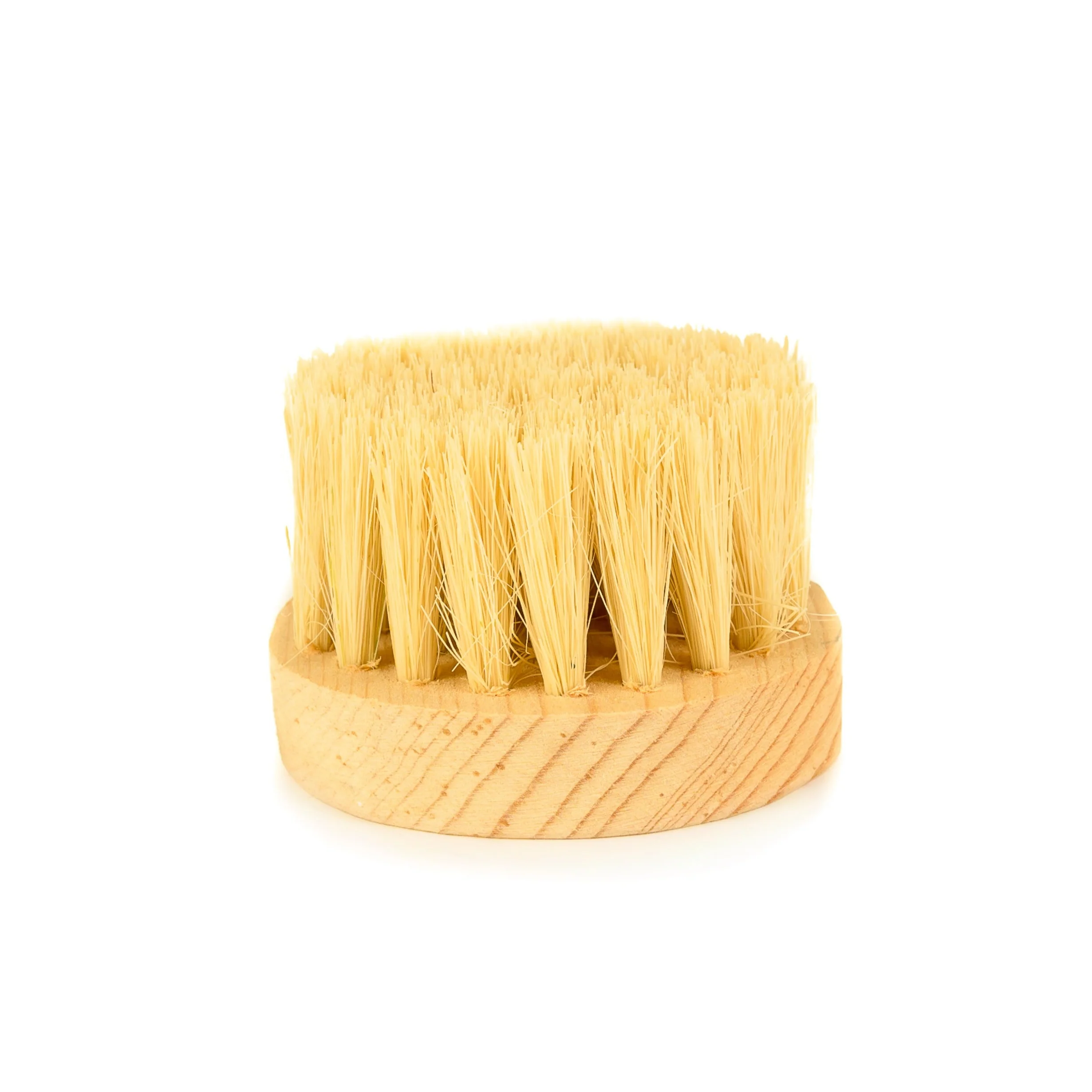 Cepillo redondo con cerdas de ixtle montado en una base de madera reciclada. Ideal como complementos para una limpieza ecológica. Alternativa vegetal.