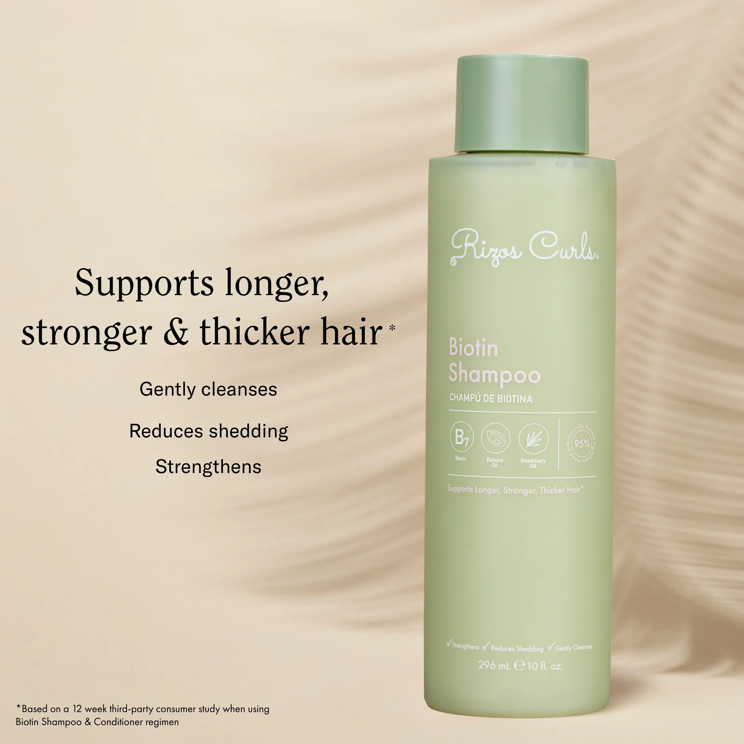 *Basado en un estudio de consumidores de terceros de 12 semanas al usar el régimen de champú y acondicionador con biotina