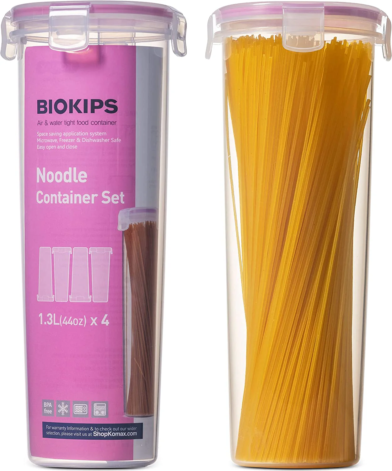Juego de recipientes para fideos, espagueti y pasta: mantenga sus fideos y pasta frescos y seguros con nuestro juego Komax de 2 recipientes herméticos para almacenar alimentos. Estos recipientes de cocina son botes largos y transparentes con tapas herméticas que son ideales para todo tipo de almacenamiento de pasta. El soporte para pasta, que mide 4.3″ x 10.7″, viene con una capacidad de 44 onzas, ¡suficiente para una libra de pasta y alrededor de 2 cajas de espagueti!