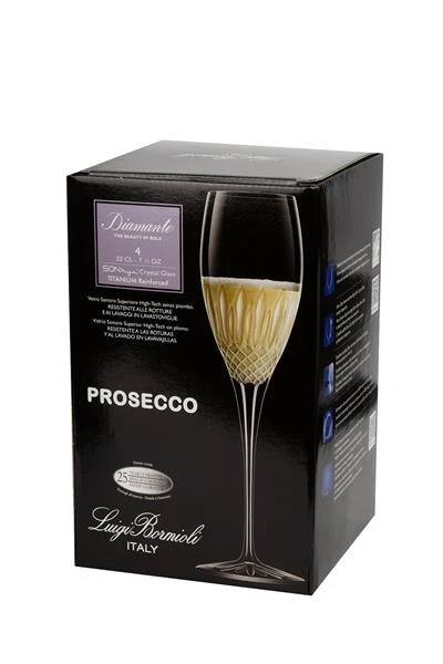 Celebra con distinción gracias a la copa para champagne Luigi Bormioli modelo Diamante, una pieza que combina diseño geométrico sofisticado con calidad de cristalería italiana.