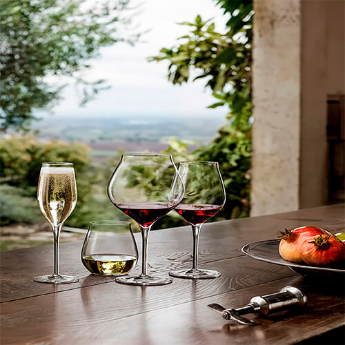 Su forma amplia y redondeada permite una mejor oxigenación del vino, ideal para cepas como cabernet sauvignon, syrah o merlot. Fabricada en vidrio cristalino de alta pureza, ofrece una transparencia excepcional y una sensación ligera al tacto.
