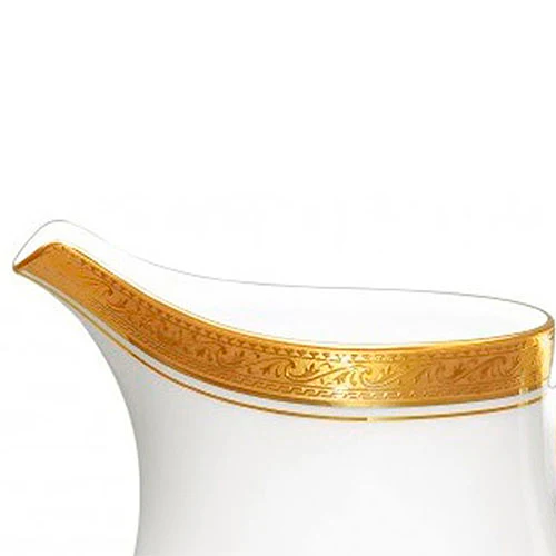 Crestwood Gold trae elegancia sofisticada a la mesa! Este deslumbrante patrón presenta porcelana blanca brillante y nítida, combinada con una banda dorada para lograr una apariencia de elegante sencillez. La banda dorada exterior está grabada con un diseño de hojas enrolladas. Crestwood Gold ofrece componentes de configuración de lugares, así como una variedad de piezas para servir y accesorios. ¡Crestwood Gold es lo suficientemente resistente para el uso diario y es apto para lavavajillas