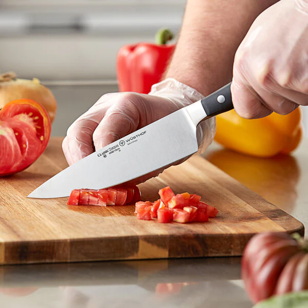 - El cuchillo de cocina multiusos se puede usar para picar, picar, rebanar y cortar en cubitos.