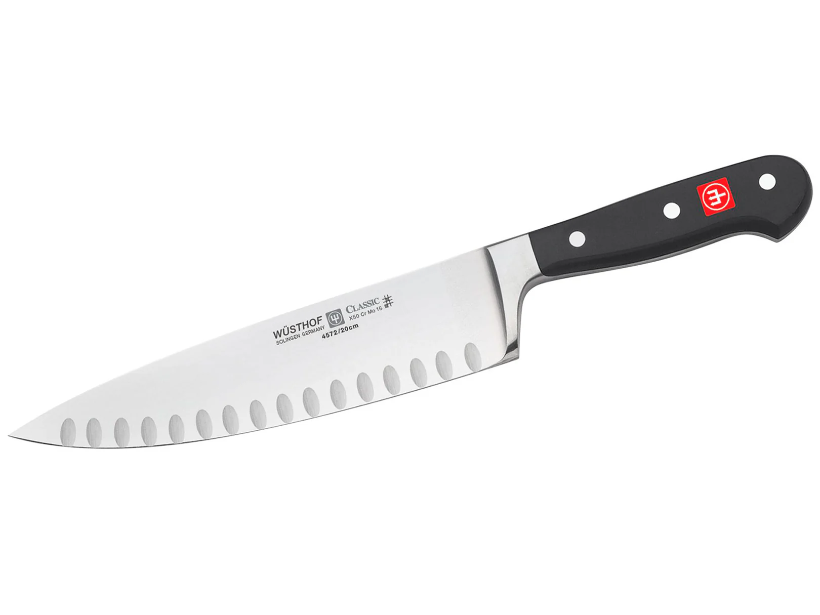 El cuchillo de chef con hoyuelos Wüsthof Classic de 20 cm es absolutamente imprescindible.
