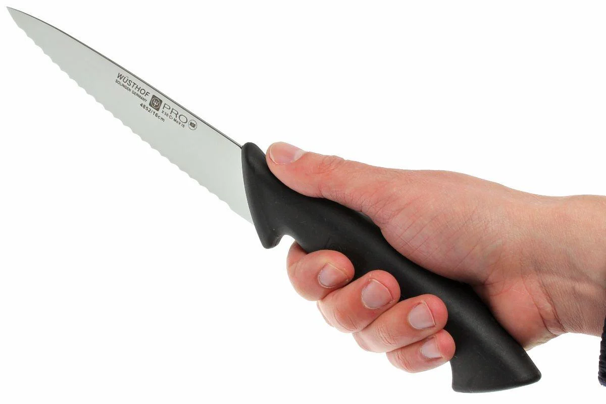 Los cuchillos de cocina Wusthof de la serie Pro están destinados a un uso profesional y, por supuesto, son ideales para cualquiera que quiera cortar como un chef profesional. Estos cuchillos se distinguen de otros cuchillos de chef por su mango muy cómodo. El material de tacto suave casi se pega a tus manos. Gracias al equilibrio óptimo, estos cuchillos también son bastante cómodos con un uso a largo plazo. Los mangos están hechos de dos materiales sintéticos: una capa central para brindar estabilidad y una capa antideslizante en el exterior. No tienes que preocuparte por la higiene. El material ha sido probado y aprobado por NSF ( www.nsf.org ).
