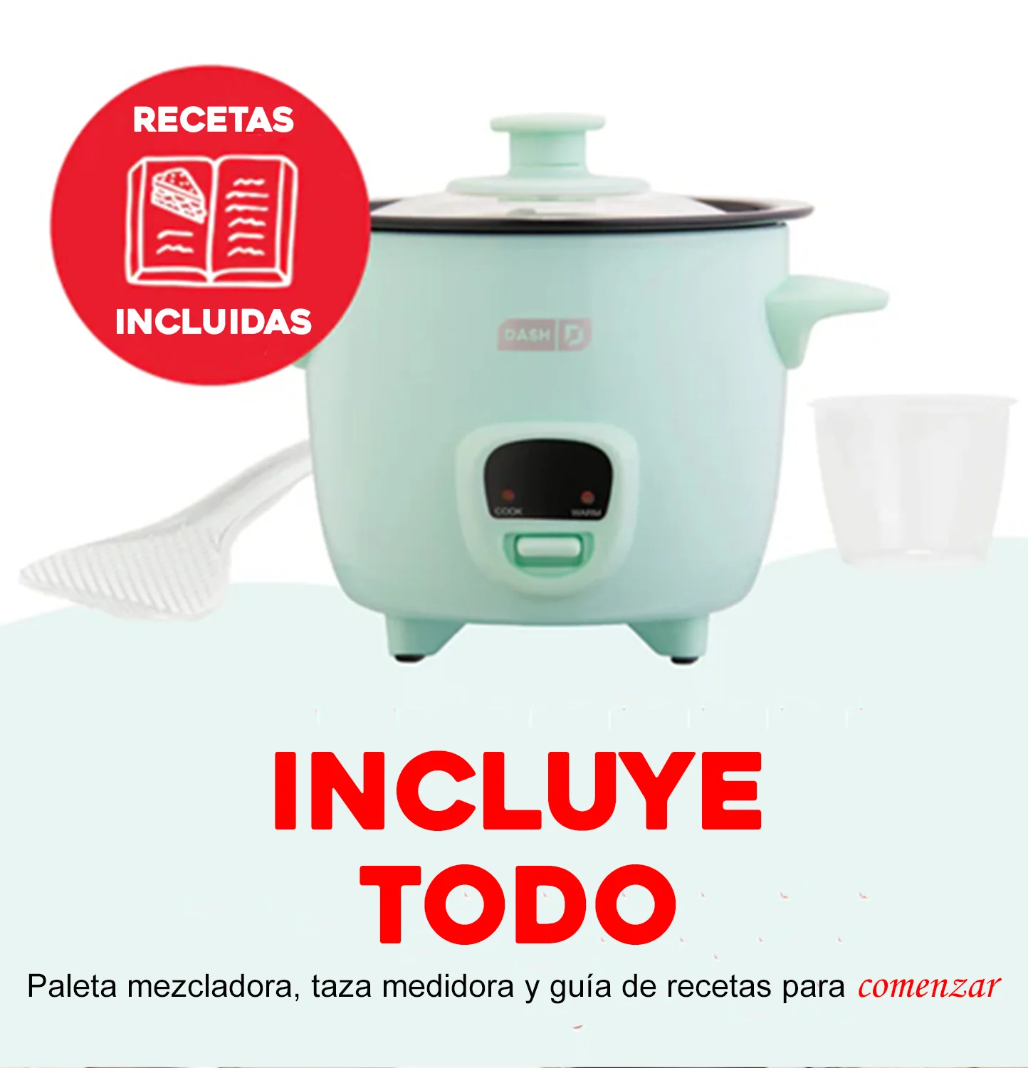 Dash Mini Olla Arrocera | Antiadherente | Color Aqua | Ideal para arroz, avena, quinoa y sopas | Función Automática «Mantener Caliente»| Fácil de Usar | Fácil de Limpiar