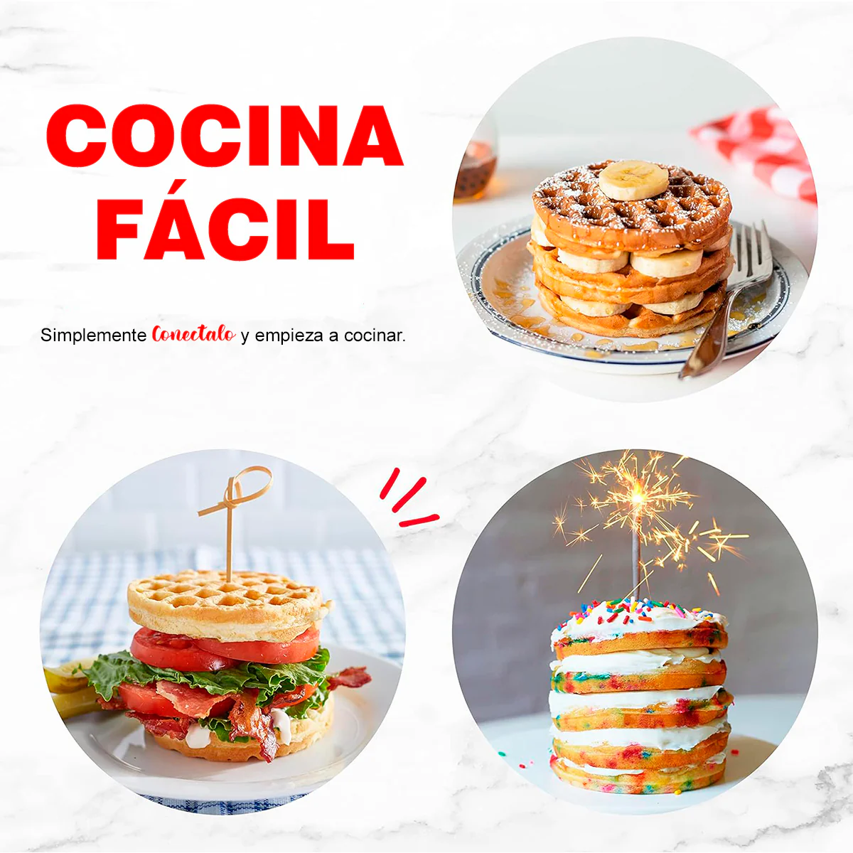 Incluye recetario: prepara waffles clásicos o aventúrate con hash browns caseros.
