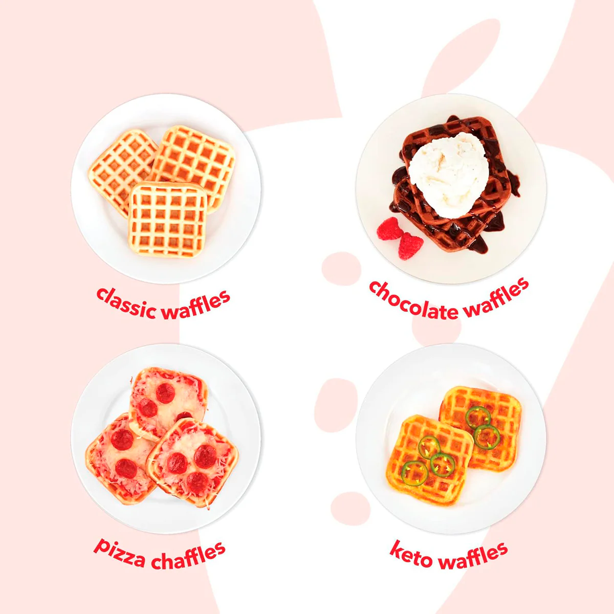 Haz tus waffles individuales favoritos de desayuno o sé creativo con hash browns, galletas e incluso pizzas de galletas.