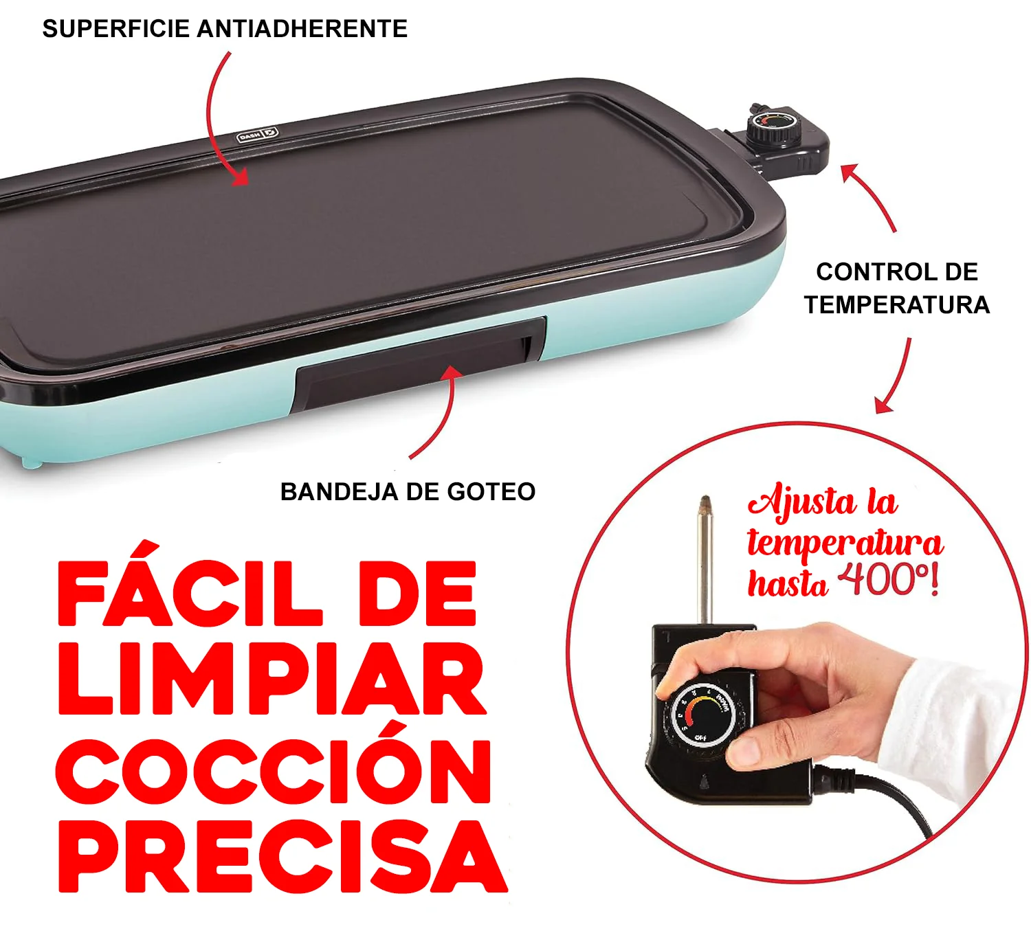 – Antiadherente y fácil de limpiar: la superficie de la placa de cocción antiadherente sin PFOA proporciona una cocción uniforme para resultados consistentes.