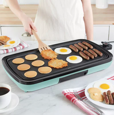 DASH Plancha eléctrica para uso diario | Antiadherente 49.5 x 24 cm | Aqua | Ideal para hot cakes, hamburguesas, huevos y más