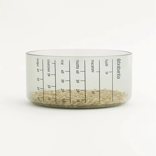 ¿Estás buscando una solución inteligente que evite quedarse con sobras y derrochar comida? Gracias a las sencillas marcas de la taza podrás calcular la porción exacta de arroz, pasta, cuscús, etc. que necesitas por persona. Y, además, por cada recipiente vendido, Brabantia realiza una donación a The Hunger Project.