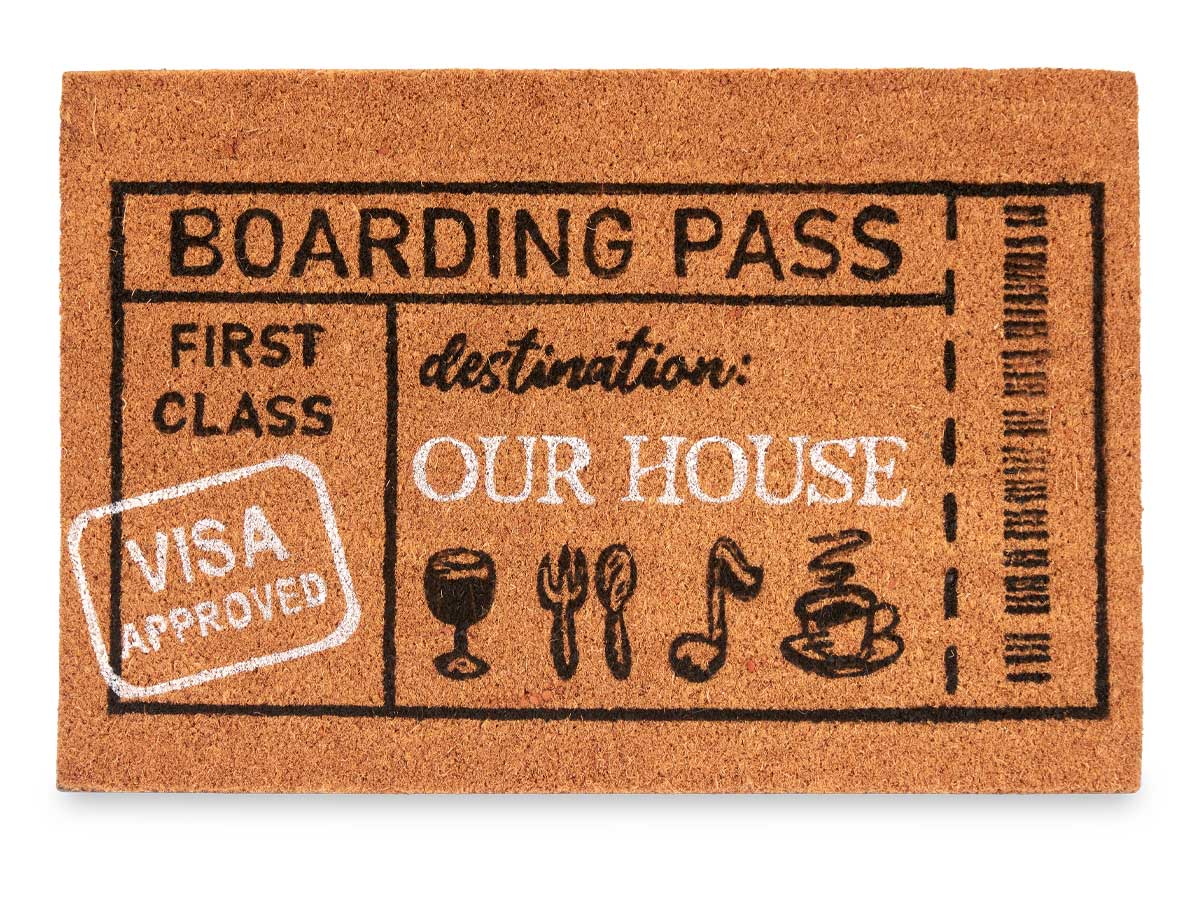 Recibe a tus invitados con estilo y espíritu viajero con el Felpudo Boarding Pass! Una elección práctica y decorativa que destaca por su originalidad.