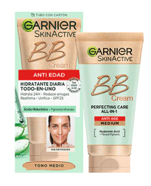 Garnier SkinActive BB Cream Anti Edad Tono Medio. Hidratante Todo en Uno con Color con SPF25