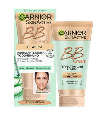 Garnier SkinActive BB Cream Clásica Tono Medio. Hidratante Todo en Uno con Color con SPF15