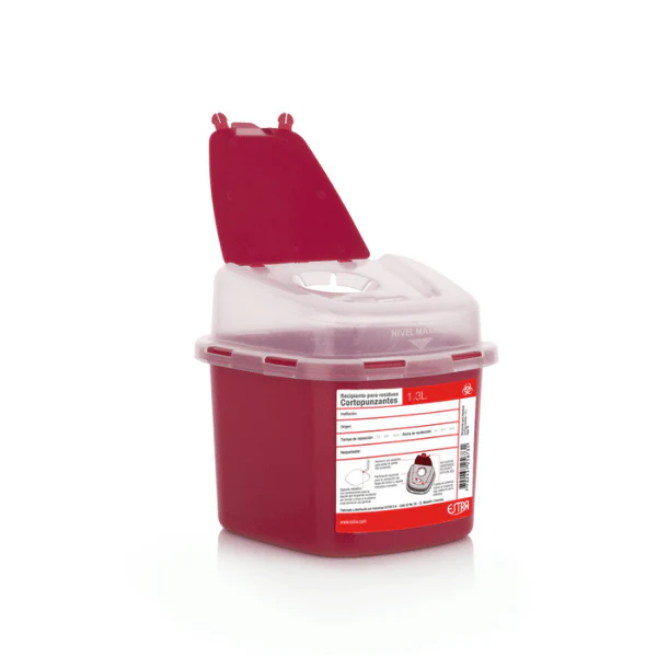 El guardián recolector de 1.3 lts de Estra está fabricado en plástico resistente para almacenar residuos cortopunzantes como agujas y lancetas o ampollas usadas en el sector de la salud.