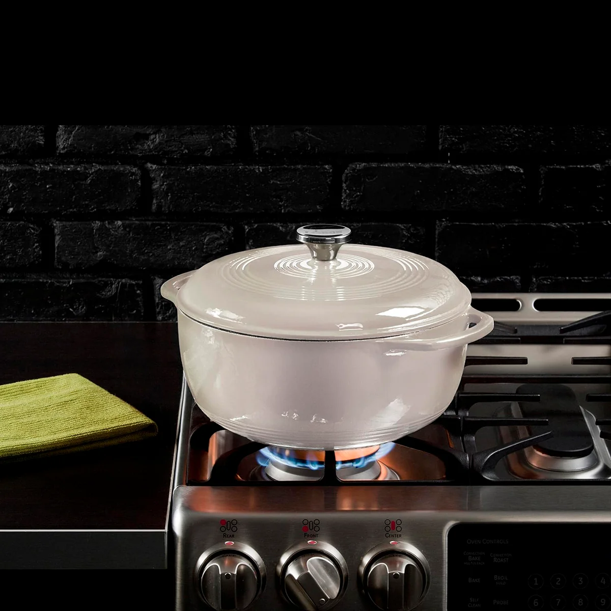 - Tu horno holandés ideal: Una combinación perfecta de forma y función que no te abandona. El horno holandés Lodge no solo hace que tu cocina se vea bien, sino que es un clásico de hierro fundido esmaltado, ideal para preparar y servir comidas memorables. Asar, estofar, hornear o asar sus comidas favoritas en el horno hasta en 500 grados F.