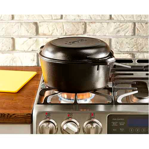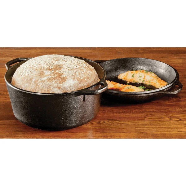 Su material de hierro fundido garantiza una distribución pareja del calor, lo que lo hace ideal para preparar guisos, panes, estofados y cocciones lentas. Es apto para estufa, horno, parrilla, inducción e incluso fuego directo.