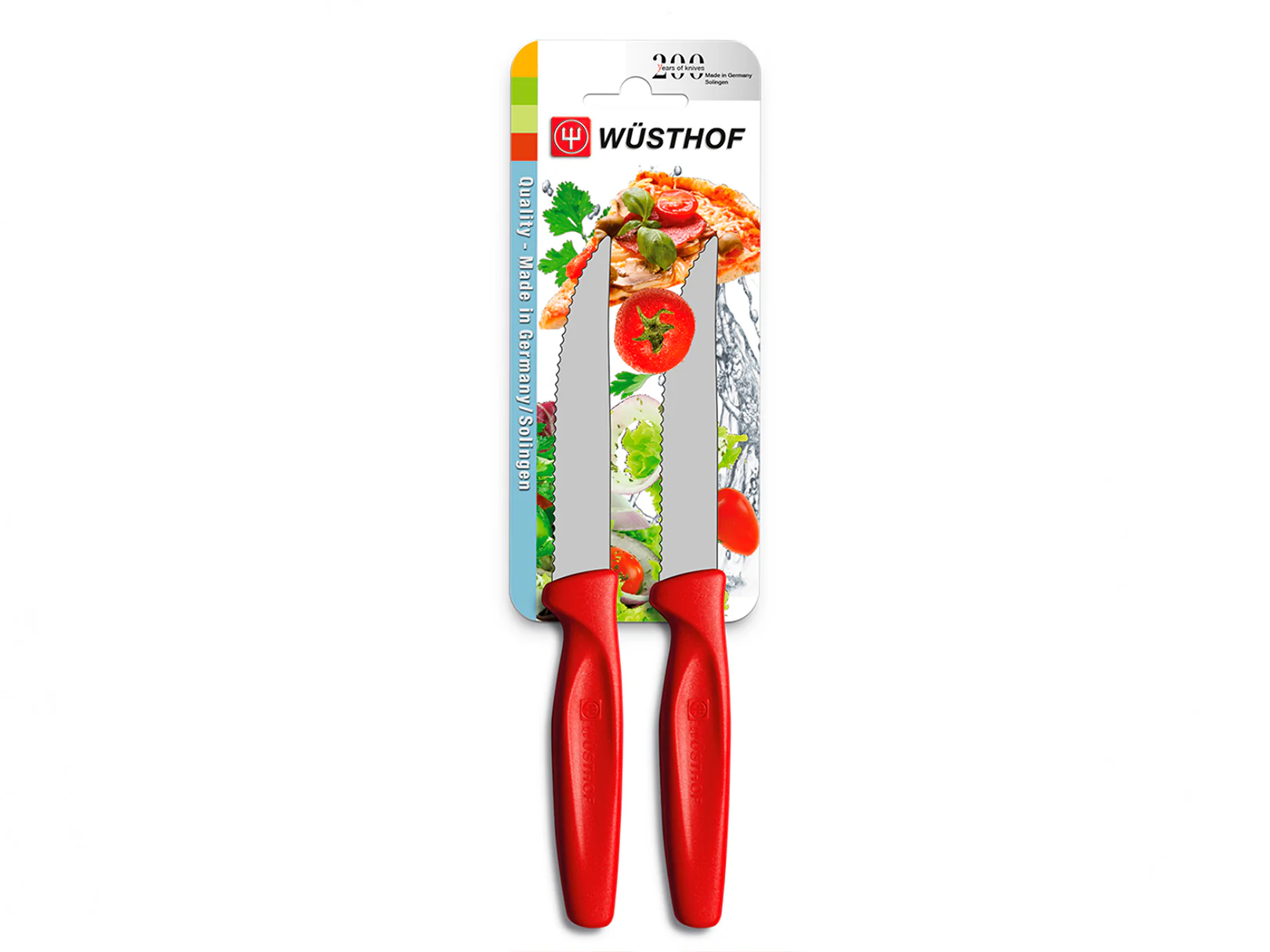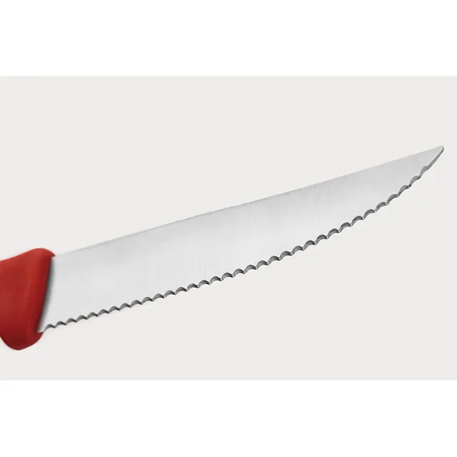 Estos cuchillos para carne/pizza afilados como navajas de la colección Wüsthof Create pueden cortar fácilmente una pizza o un bistec gracias al borde afilado y ondulado. Sin embargo, también puede utilizar estos cuchillos para cortar pan o salchichas.
