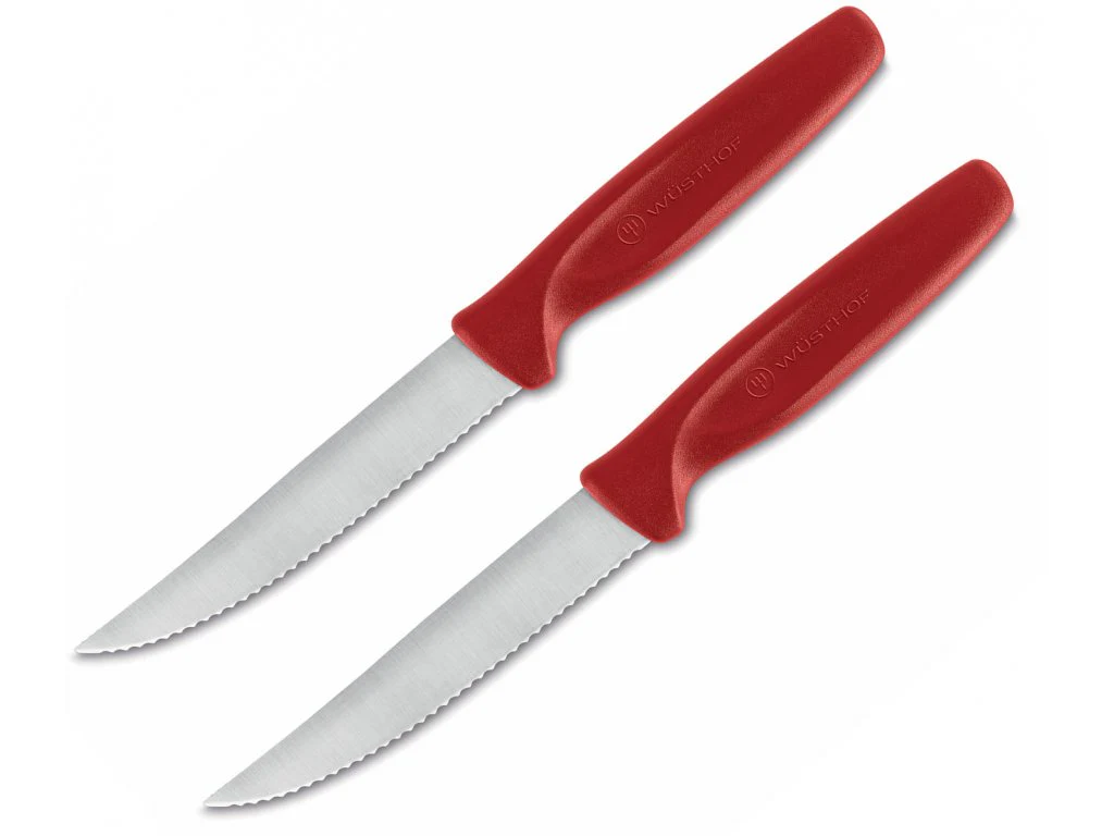 Juego 2 cuchillos carne rojo acero Wusthof desc