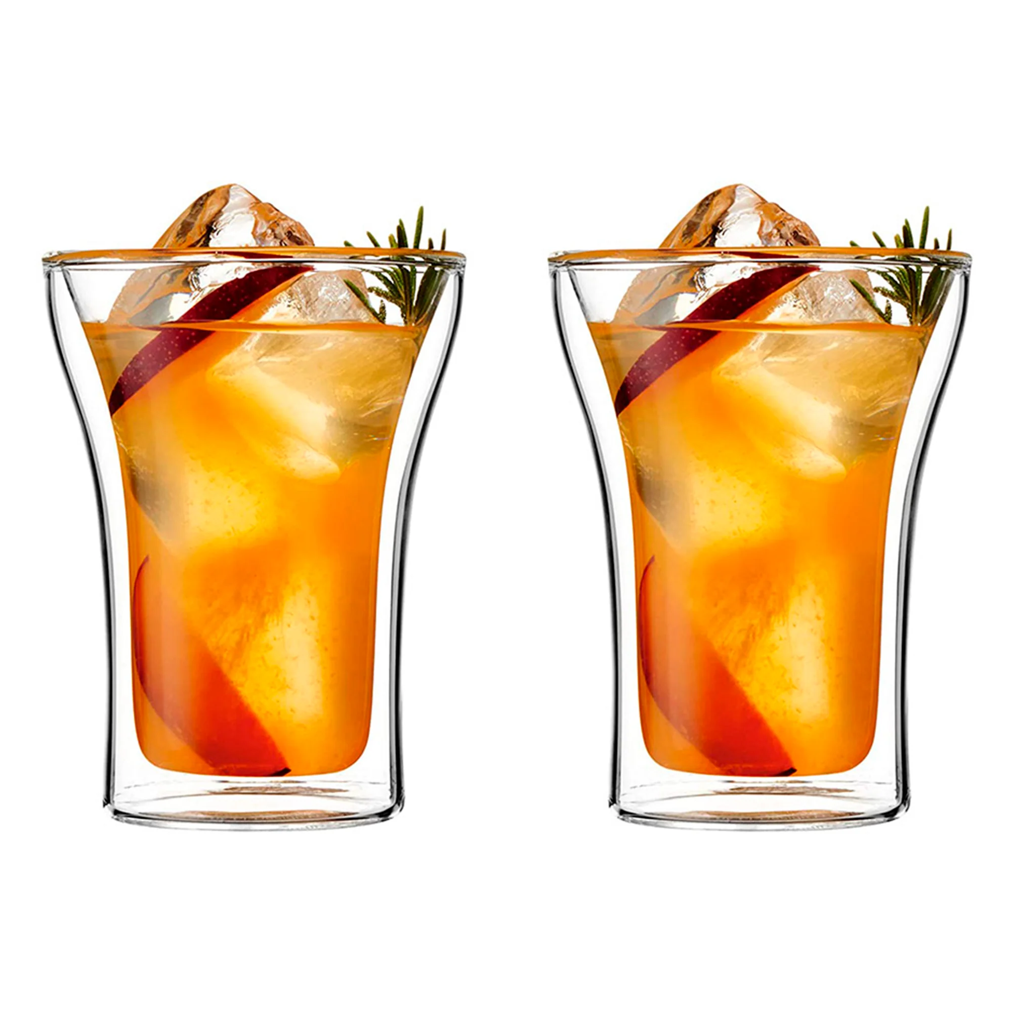 Añade un toque de elegancia a tu cristalería con este juego de vasos de doble aislamiento ASSAM. Una combinación perfecta entre utilidad y diseño. Estos elegantes vasos curvos se adaptan cómodamente a tu mano, al mismo tiempo que su estructura de doble pared crea una ilusión óptica al ver tu bebida suspendida en el vaso.