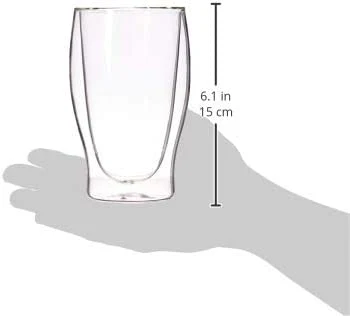 Vaso fabricado a mano en vidrio borosilicato con doble pared térmica. Mantiene las temperaturas de las bebidas calientes/frías durante mucho tiempo. Sin condensación externa. Aptas para el lavavajillas.