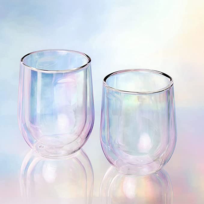 Levanta una copa (o dos) por el juego sin tallo más genial de la historia. Fabricado con vidrio de doble pared liviano pero duradero que está listo para el frío y el calor. Viene en una hermosa caja de regalo, perfecta para cualquier ocasión.