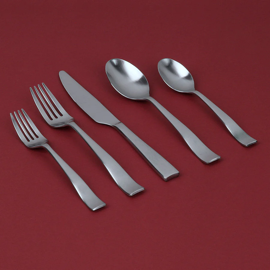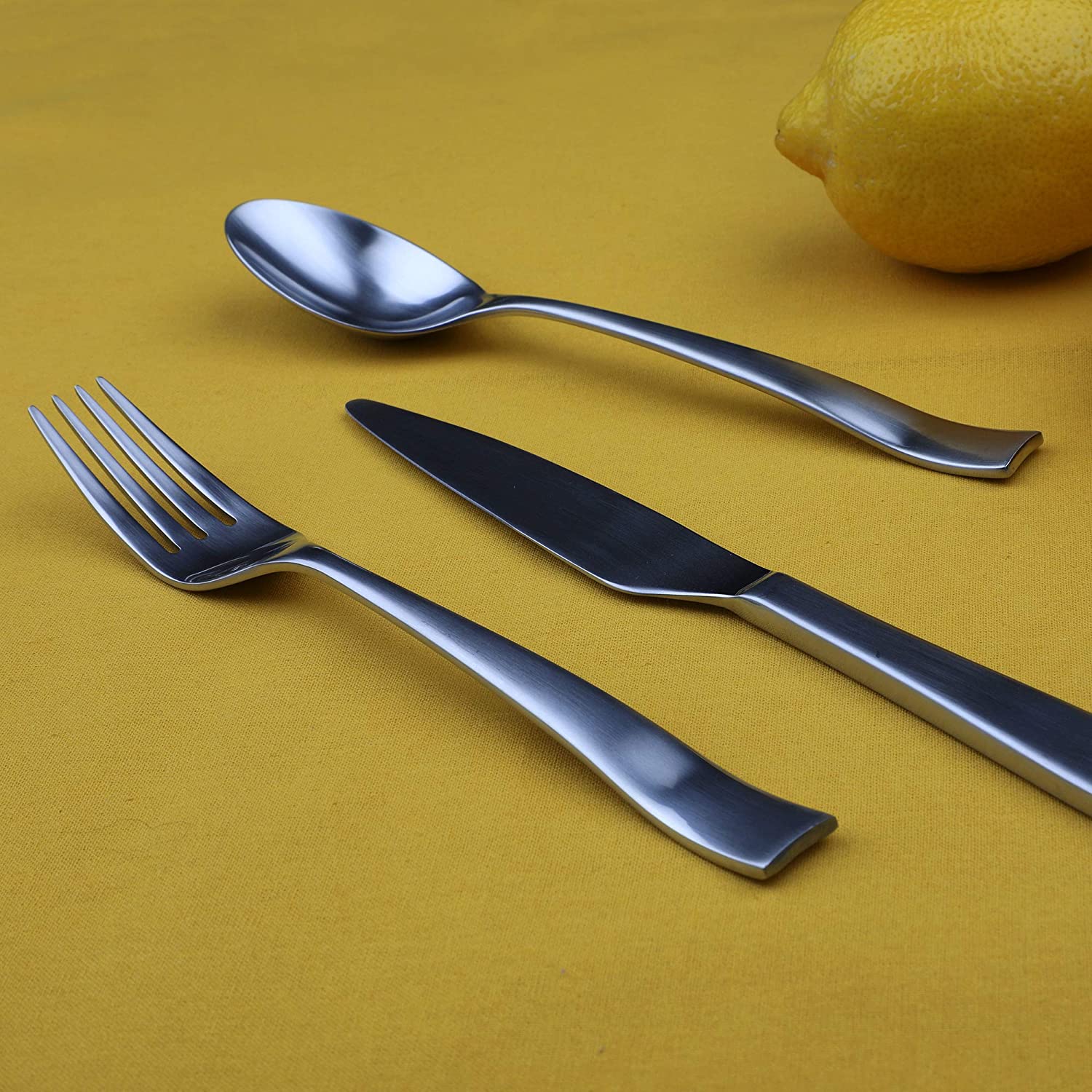 Diseño de calidad: elegante juego de cubiertos de acero inoxidable en acabado mate con diseño ergonómico y tacto pesado.