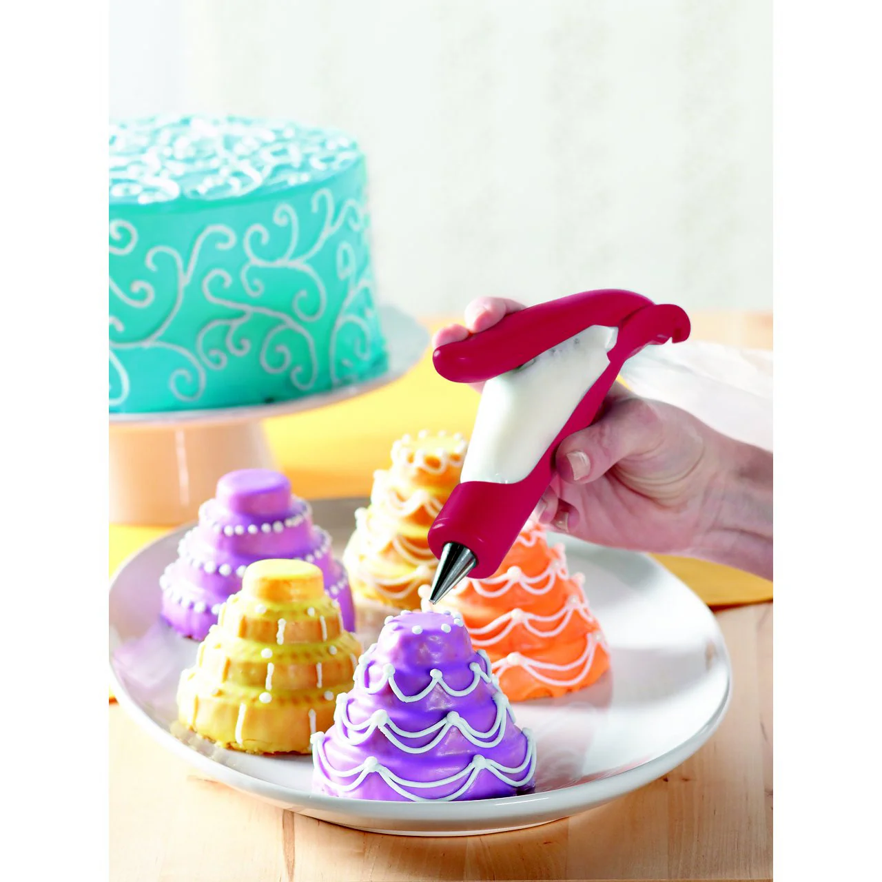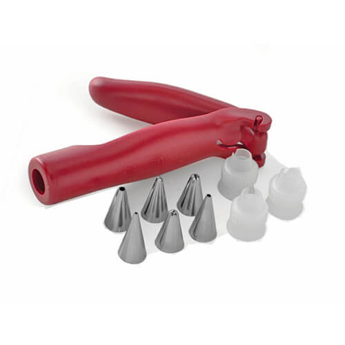 Decora tus pasteles, cupcakes y galletas rápida y fácilmente con la pluma de decoracion. Controlar con una mano y simplemente apriete para dispensar la formación del glaseado, utiliza bolsas de duya estándar y funciona con todas las boquilla de decoración.