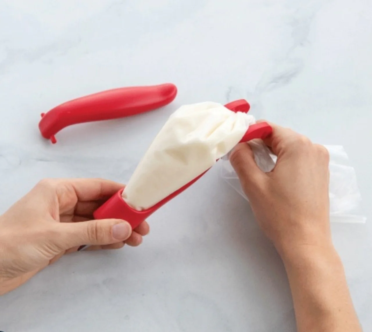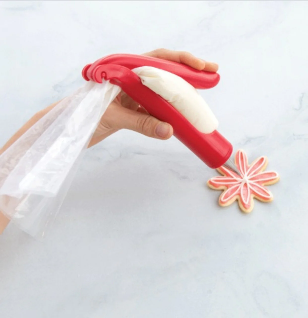 ¡Es tan fácil como escribir con un bolígrafo!•:¡Simplemente llene la bolsa con glaseado, insértela en el bolígrafo y decore!•:El diseño ergonómico garantiza un control preciso.•:Compatible con todas las puntas de decoración de tamaño estándar.