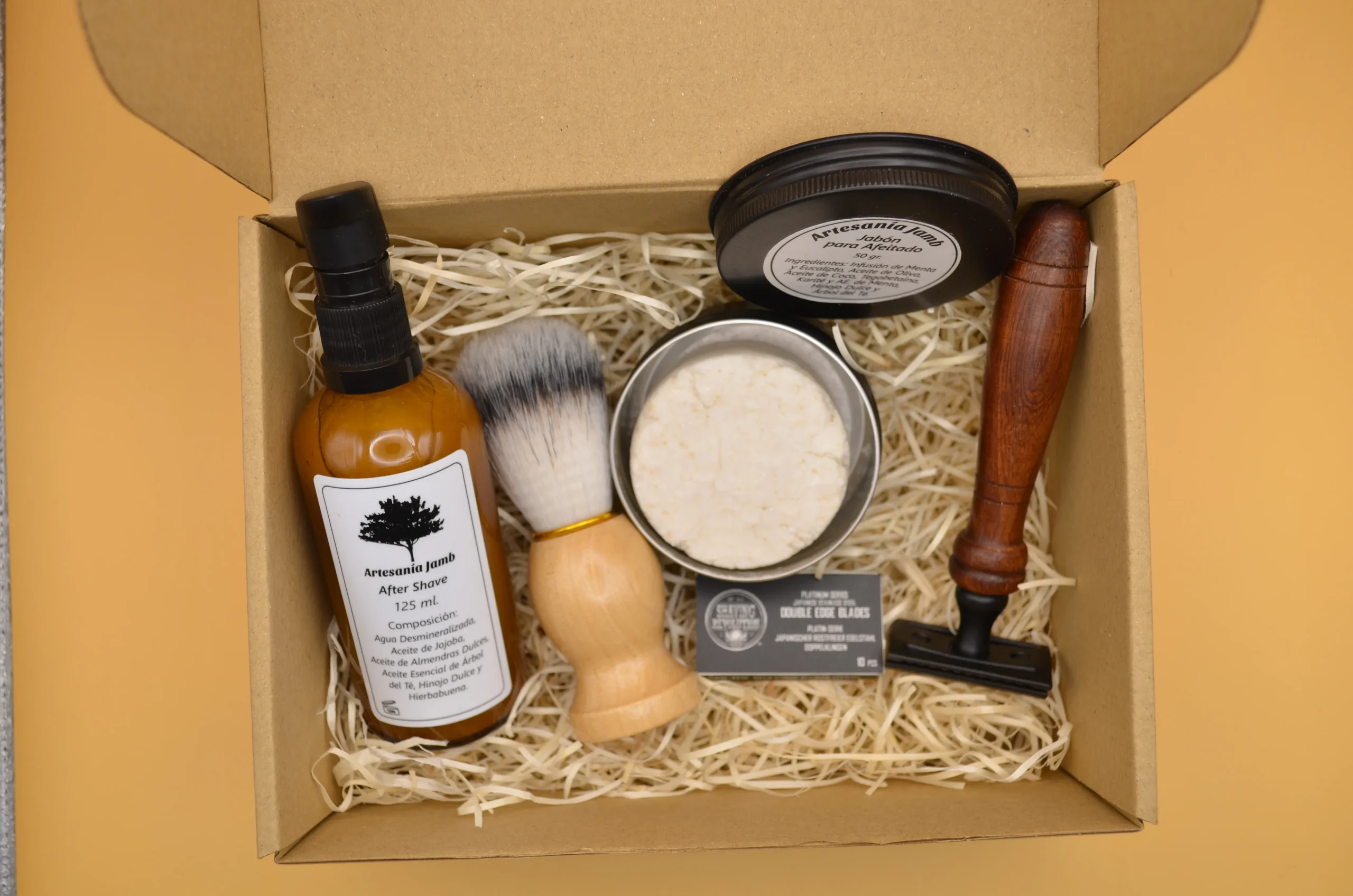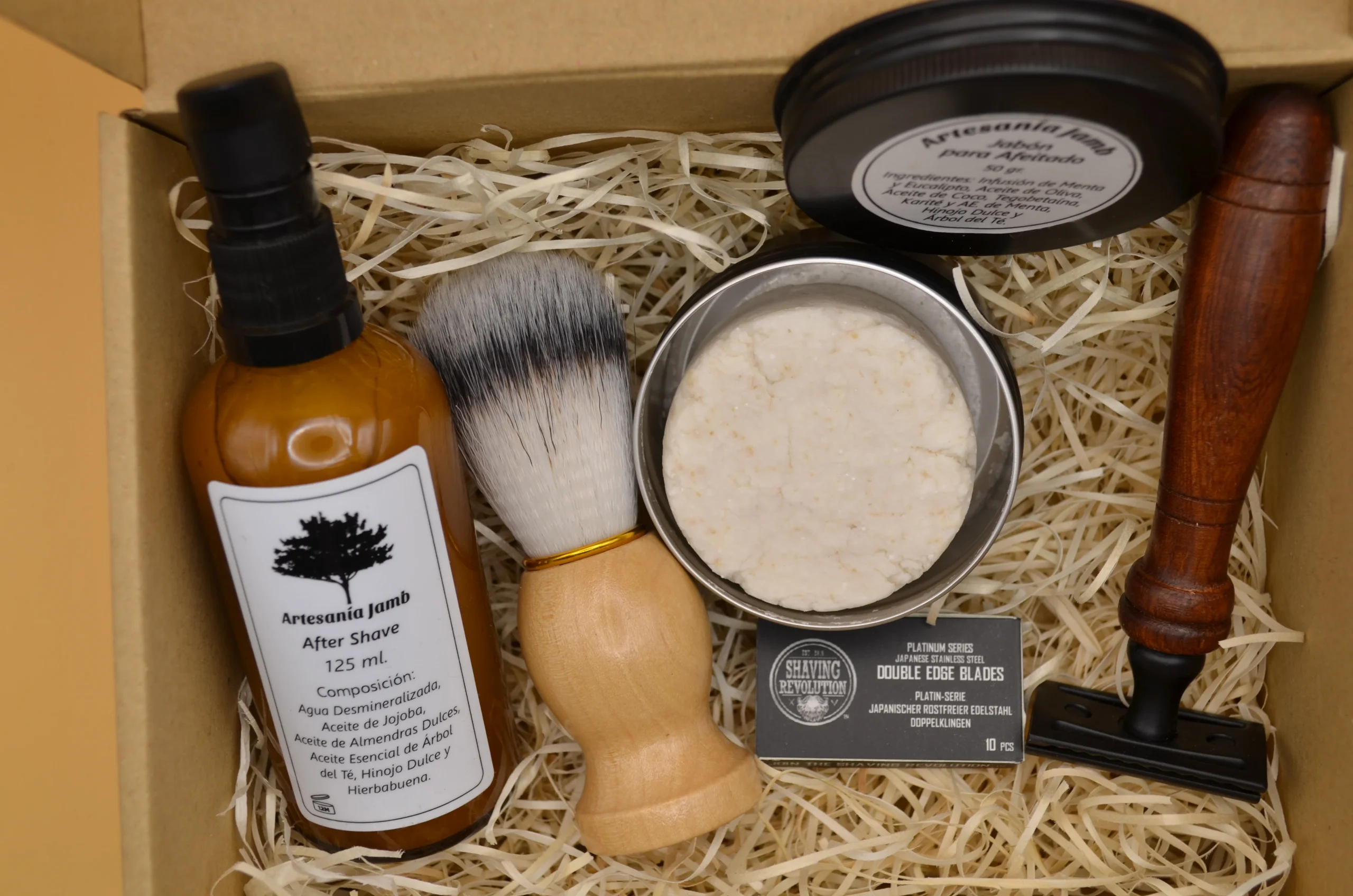 KIT AFEITADO – JABÓN NATURAL + BROCHA DE PELO DELICADO + AFTER SHAVE + MAQUINA DE AFEITAR Y RECAMBIO, REGALO IDEAL PARA HOMBRES, REGALO PAPÁ, REGALO DÍA DEL PADRE, CUIDADO FACIAL.
