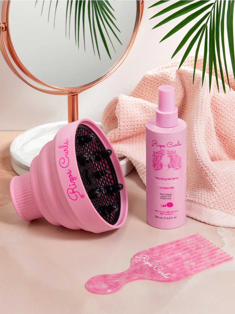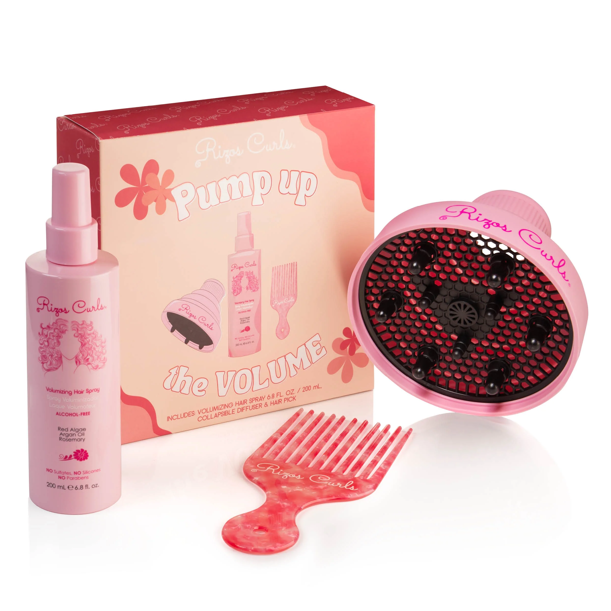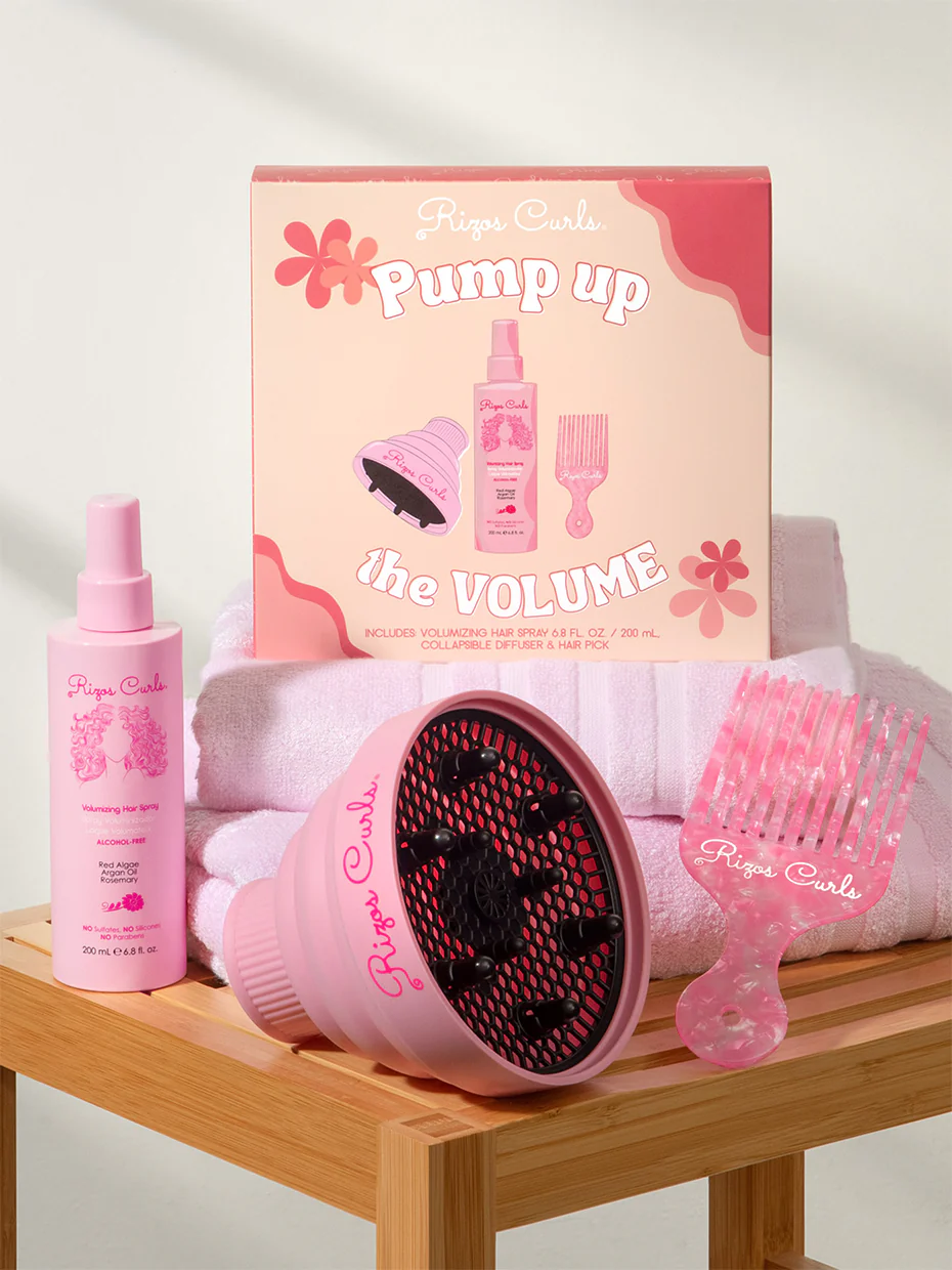 Este exclusivo kit Pump Up the Volume incluye nuestro spray para dar volumen al cabello, difusor plegable y peine para recoger el cabello. El trío definitivo para MÁXIMO volumen, fijación duradera, brillo radiante y rizos sin arrugas.