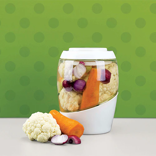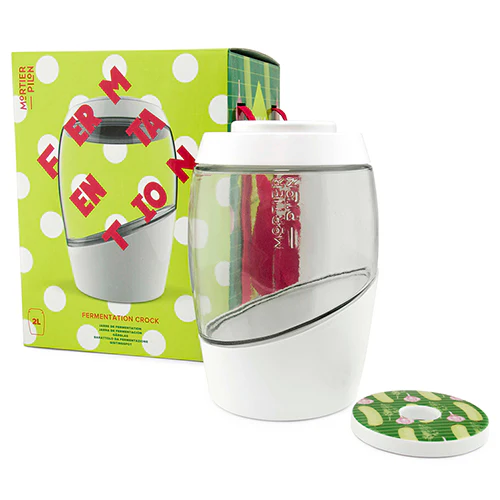 Este kit tiene todo lo que necesita para comenzar a hacer sus propios encurtidos en casa: una vasija de fermentación duradera y de diseño inteligente que cuesta un tercio del precio (¡y del peso!) de la mayoría de las vasijas del mercado, una etiqueta reescribible para identificar cada lote y un folleto de recetas fáciles de usar y probadas minuciosamente para que pueda comenzar.