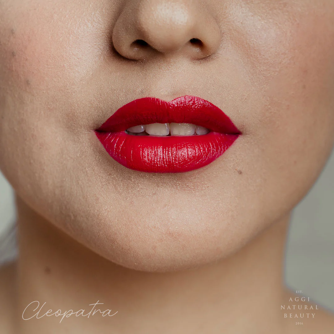 Contiene aceite de jojoba, escualano y ricino, vitamina E, manteca de cacao y karité orgánico, ceras veganas como candelilla y Carnauba en la medida perfecta para una textura cremosa y súper hidratante. Contiene óxidos de hierro, micas y algunos tonos más vibrantes (como el fucsia) pueden contener algún colorante sintético no tóxico.